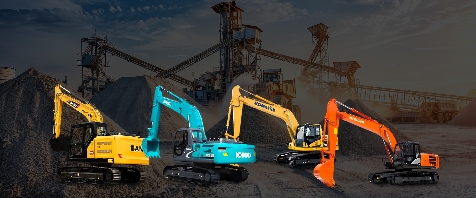 Our brands include Caterpillar, Komatsu, Kobelco, Sany, Hitachi, Hyundai, Doosan, Volvo, SDLG, etc...